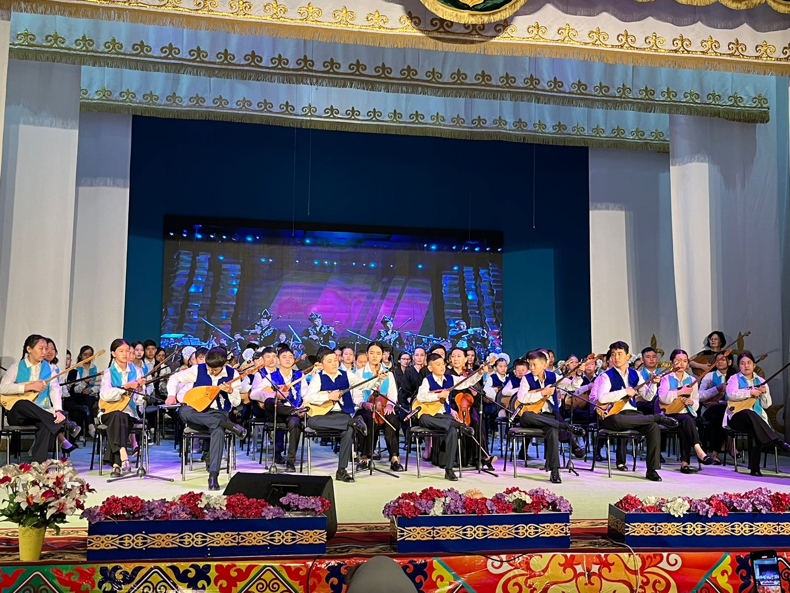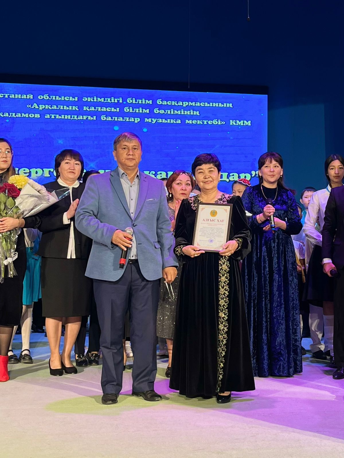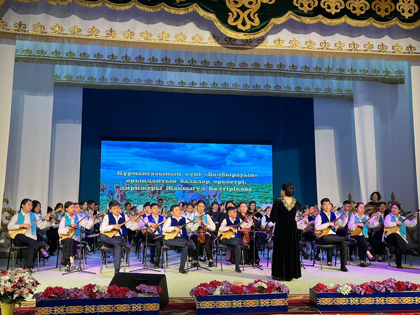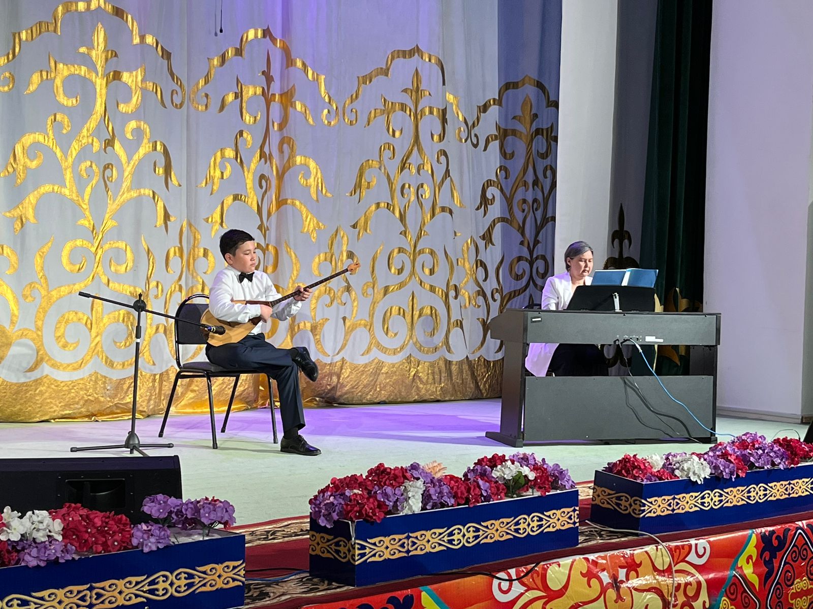 20 мамыр күні Қазақ жасөспірімдер театрында елімізде ЮНЕСКО көлемінде тойланып жатқан күй атасы - Құрманғазының 200 жылдық, ұлт ұстазы Ахмет Байтұрсыновтың 150 жылдық мерейтойға және ата-аналарға арналған облыстық «Үндестік» жобасы аясына орай мектебіміздің «Өнерге қанат қаққандар» атты жылдық есеп беру концерті өткізілді.Игі жақсылардың басын қосқан бұл концерттің алғашқы шымылдығын 80 оқушыдан құралған балалар оркестрі Құрманғазының күйі «Балбырауынды» дирижер Бөлтірікова Жақсыгүл Ибрагимқызының жетекшілігімен орындады. Концертіміз Ақанов Әділ Кәкиұлының жетекшілігімен қазақ композиторларының шығармаларынан құралған "Күй тартысқа" ұласты. Қорытынды бөлім барлық оркестр Н.Тілендиевтің «Әлқисса» күйімен тәмамдалды. Ақын аз Байтұрсынов Ахметтей, Сөзі алтын, мағынасы меруерттей дей келе А.Байтұрсыновтың «Аққұм» әнін вокал класының оқушысы, бірнеше дүркін республикалық, халықаралық байқаулардың жүлдегері Нұржайна Таубалды нақышына келтіре шырқады. Қазақстанда тұңғыш құрылған «Шертер» фольклорлы- этнографиялық ансамбльдің әншілері Сайлаубек Ордабаев пен Отаркүл Мұқатованың немерелері Томирис, Альмира және Нұрғисса Сайлаубектердің орындауында Халық күйі «Қара жорға» орындалса, болашағы көп үміт күттіретін шәкірттеріміз Аяулым, Айдана, Алихан, Адилет Абдибековтер Кармайклдің «Сердце и душа», Айтқали Жайымов «Шалқыма» орындайтын домбыра класының оқушысы, облыстық, республикалық, халықаралық байқаулардың лауреаты Қадыр Нұрәли, концертмейстер Бондаренко Римма. Құрманғазы, Тәттімбет бабамыздың, Дина анамыздың күйлерін санасына сіңірген шәкірттеріміз Ермұрат Үсеновтің «Кербез сұлу» шығармасын оқушылар халық аспаптар ансамблі Балым Жусупованың жетекшілігімен орындап берді. Домбыра, қобыз, сені ойнатамын,Толғау сап, төңіректі ойлатамын дей келе, Мұқан Төлебаевтың «Кестелі орамал» туындысын қобызшылар ансамблі Райхан Хасенова мен концертмейстер Жумаш Молдажанованың жетекшілігімен орындап, көрерменнің ыстық ілтипатына бөленді. Мектебіміздің ең жас күйші қыздарының орындауында халық күйі «Нәр ағашы» Б.Жусуповның жетекшілігімен. Абдулхамит Райымбергеновтың шығармасы «Секіртпе» Әсел Кәрібаеваның жетекшілігімен домбырашылар ансамблі қоңыр домбыраның күмбіріне бөледі. Көптің көңілінен шыққан концертіміз орындайтын шәкіртіміз Назым Алтынбаеваның орындауында, Жумаш Молдажанованың күйсандықта сүйемелдеуімен халық әні «Дайдидаумен» жалғасты. Дәстүрлі ән класынан құралған дуэт халық әні «Үш меркі» әнін тарту етті. Роза Газизованың жетекшілігімен аккордеоншыларымыз да қалыс қалмай, Шуберттің «Экосез» туындысын орындап берді.Вокалдық ансамбль жетекшісі Гүлнұр Баяхметованың орындауында ешқашан ескірмейтін «Қазақ әндерінен попурри» орындалды. Марат Бердіғұловтың «Ақсауыт» шығармасы жетекшісі Ә.Ақановтың «Арқа сазы» ұлт аспаптар ансамблінің орындауында көпшіліктің құрметіне бөленді. Шәмші Қалдаяқовтың «Теріскей» әнін О.Қапан нақышына келтіре шырқады.Денеңді шымырлатып, толқытатын, Мәңгілік басымды ием, өнерге мен демекші, Т.Мұханбетжанов «Детство» шығармасы С.Шайхин жетекшілік ететін БЭНД Байқадамов. Карл Дженкинс "Палладио" орындайтын ансамбль жетекшісі Райхан Хасенова. «Я люблю кофе» орындайтын бірінші сынып оқушылары, жетекшісі Молдажанова Жумаш. Алтынайдың күйі «Ақжелең» орындайты
