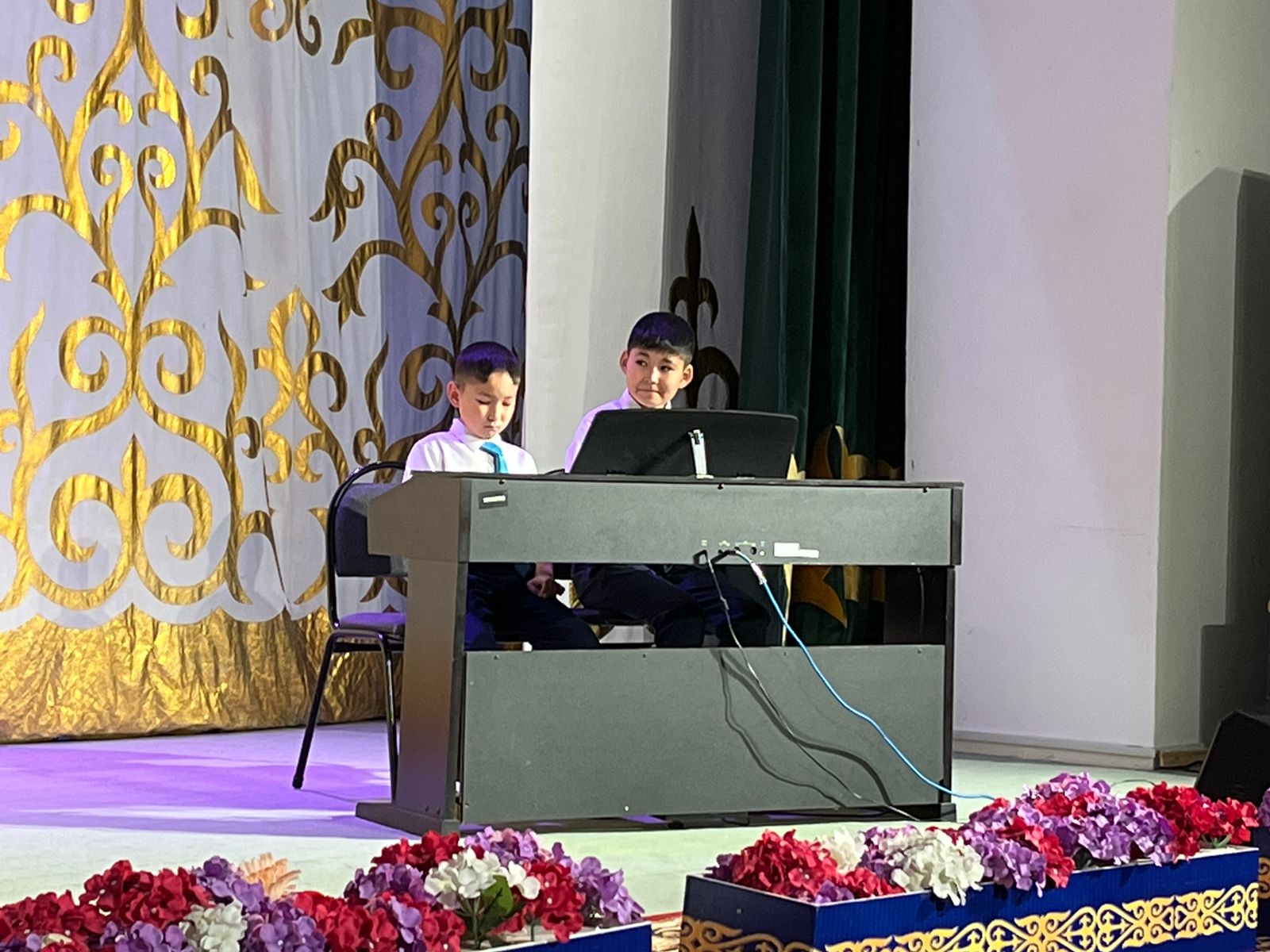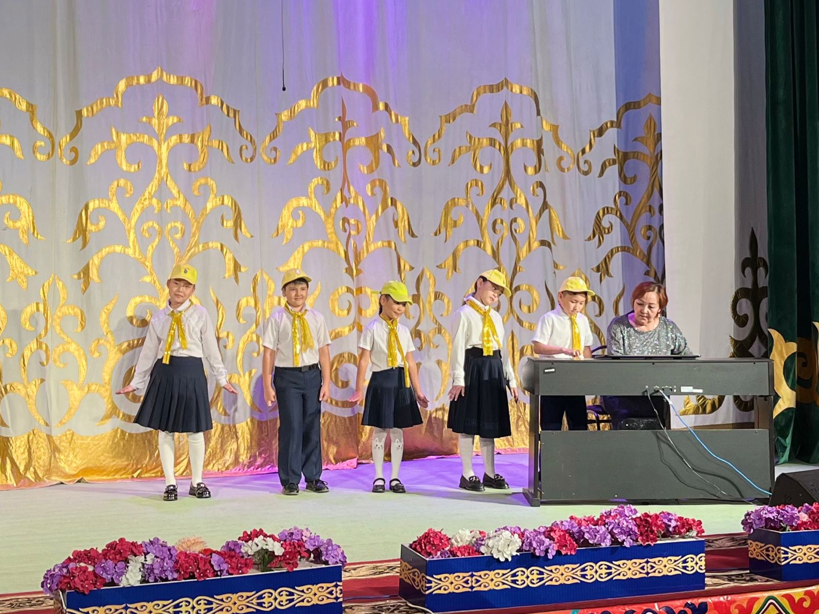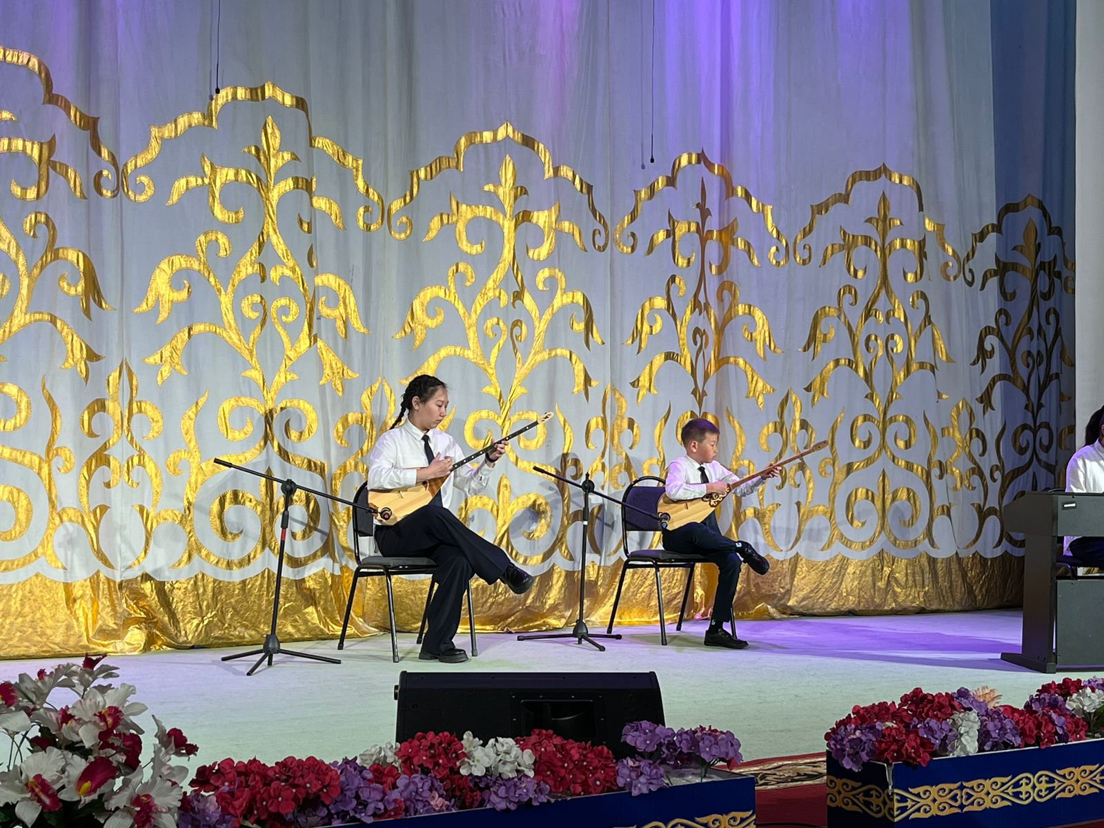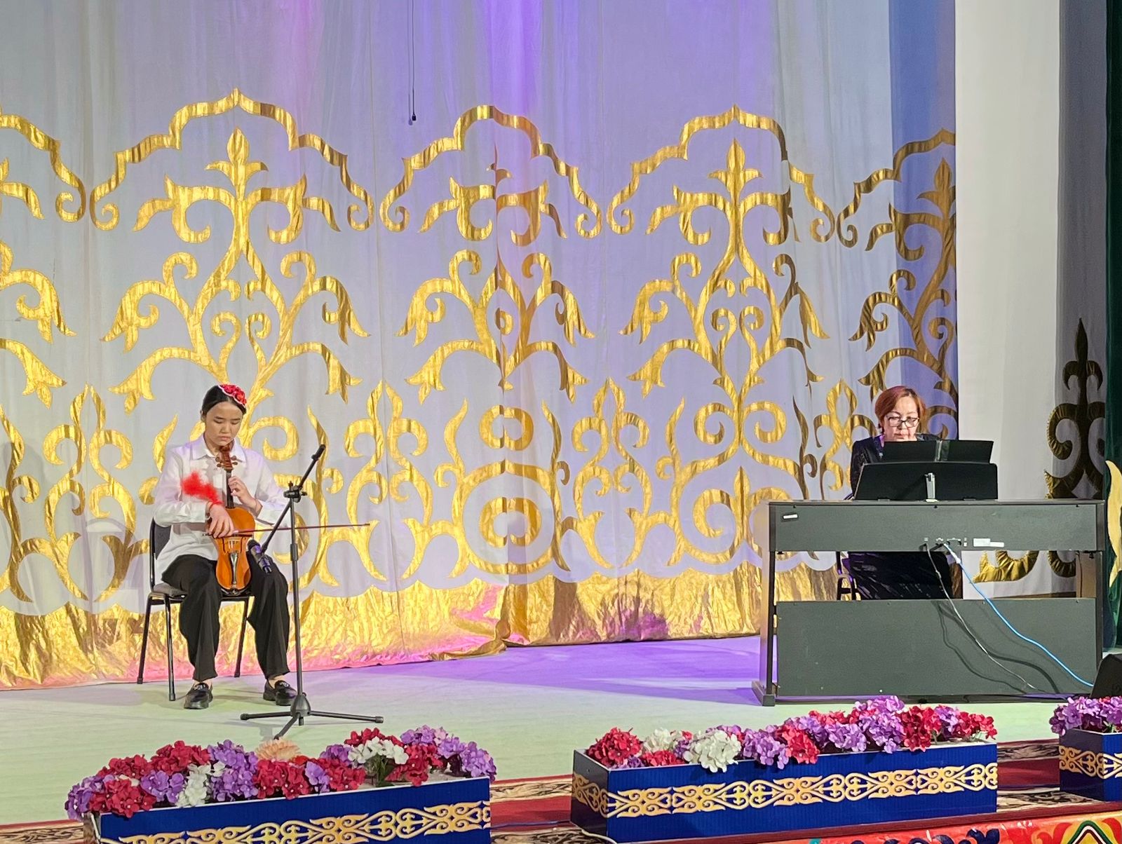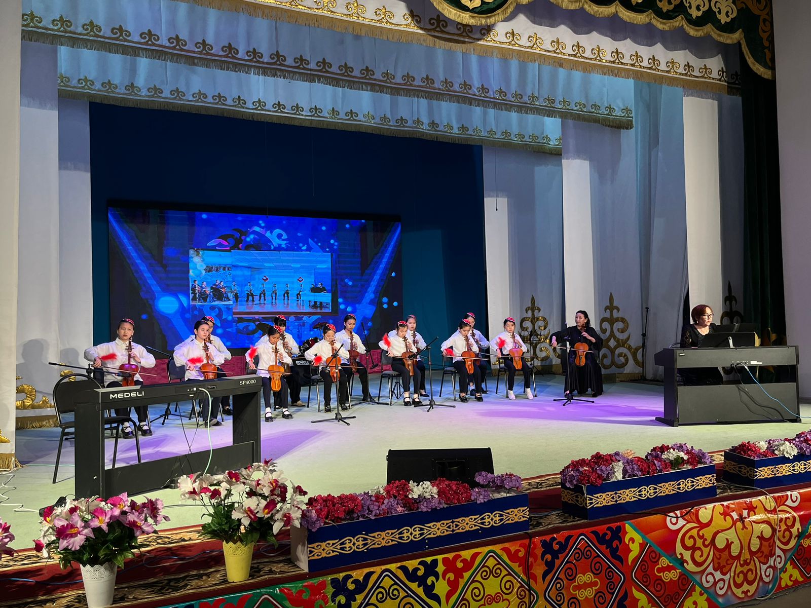 20 мамыр күні Қазақ жасөспірімдер театрында елімізде ЮНЕСКО көлемінде тойланып жатқан күй атасы - Құрманғазының 200 жылдық, ұлт ұстазы Ахмет Байтұрсыновтың 150 жылдық мерейтойға және ата-аналарға арналған облыстық «Үндестік» жобасы аясына орай мектебіміздің «Өнерге қанат қаққандар» атты жылдық есеп беру концерті өткізілді.Игі жақсылардың басын қосқан бұл концерттің алғашқы шымылдығын 80 оқушыдан құралған балалар оркестрі Құрманғазының күйі «Балбырауынды» дирижер Бөлтірікова Жақсыгүл Ибрагимқызының жетекшілігімен орындады. Концертіміз Ақанов Әділ Кәкиұлының жетекшілігімен қазақ композиторларының шығармаларынан құралған "Күй тартысқа" ұласты. Қорытынды бөлім барлық оркестр Н.Тілендиевтің «Әлқисса» күйімен тәмамдалды. Ақын аз Байтұрсынов Ахметтей, Сөзі алтын, мағынасы меруерттей дей келе А.Байтұрсыновтың «Аққұм» әнін вокал класының оқушысы, бірнеше дүркін республикалық, халықаралық байқаулардың жүлдегері Нұржайна Таубалды нақышына келтіре шырқады. Қазақстанда тұңғыш құрылған «Шертер» фольклорлы- этнографиялық ансамбльдің әншілері Сайлаубек Ордабаев пен Отаркүл Мұқатованың немерелері Томирис, Альмира және Нұрғисса Сайлаубектердің орындауында Халық күйі «Қара жорға» орындалса, болашағы көп үміт күттіретін шәкірттеріміз Аяулым, Айдана, Алихан, Адилет Абдибековтер Кармайклдің «Сердце и душа», Айтқали Жайымов «Шалқыма» орындайтын домбыра класының оқушысы, облыстық, республикалық, халықаралық байқаулардың лауреаты Қадыр Нұрәли, концертмейстер Бондаренко Римма. Құрманғазы, Тәттімбет бабамыздың, Дина анамыздың күйлерін санасына сіңірген шәкірттеріміз Ермұрат Үсеновтің «Кербез сұлу» шығармасын оқушылар халық аспаптар ансамблі Балым Жусупованың жетекшілігімен орындап берді. Домбыра, қобыз, сені ойнатамын,Толғау сап, төңіректі ойлатамын дей келе, Мұқан Төлебаевтың «Кестелі орамал» туындысын қобызшылар ансамблі Райхан Хасенова мен концертмейстер Жумаш Молдажанованың жетекшілігімен орындап, көрерменнің ыстық ілтипатына бөленді. Мектебіміздің ең жас күйші қыздарының орындауында халық күйі «Нәр ағашы» Б.Жусуповның жетекшілігімен. Абдулхамит Райымбергеновтың шығармасы «Секіртпе» Әсел Кәрібаеваның жетекшілігімен домбырашылар ансамблі қоңыр домбыраның күмбіріне бөледі. Көптің көңілінен шыққан концертіміз орындайтын шәкіртіміз Назым Алтынбаеваның орындауында, Жумаш Молдажанованың күйсандықта сүйемелдеуімен халық әні «Дайдидаумен» жалғасты. Дәстүрлі ән класынан құралған дуэт халық әні «Үш меркі» әнін тарту етті. Роза Газизованың жетекшілігімен аккордеоншыларымыз да қалыс қалмай, Шуберттің «Экосез» туындысын орындап берді.Вокалдық ансамбль жетекшісі Гүлнұр Баяхметованың орындауында ешқашан ескірмейтін «Қазақ әндерінен попурри» орындалды. Марат Бердіғұловтың «Ақсауыт» шығармасы жетекшісі Ә.Ақановтың «Арқа сазы» ұлт аспаптар ансамблінің орындауында көпшіліктің құрметіне бөленді. Шәмші Қалдаяқовтың «Теріскей» әнін О.Қапан нақышына келтіре шырқады.Денеңді шымырлатып, толқытатын, Мәңгілік басымды ием, өнерге мен демекші, Т.Мұханбетжанов «Детство» шығармасы С.Шайхин жетекшілік ететін БЭНД Байқадамов. Карл Дженкинс "Палладио" орындайтын ансамбль жетекшісі Райхан Хасенова. «Я люблю кофе» орындайтын бірінші сынып оқушылары, жетекшісі Молдажанова Жумаш. Алтынайдың күйі «Ақжелең» орындайты