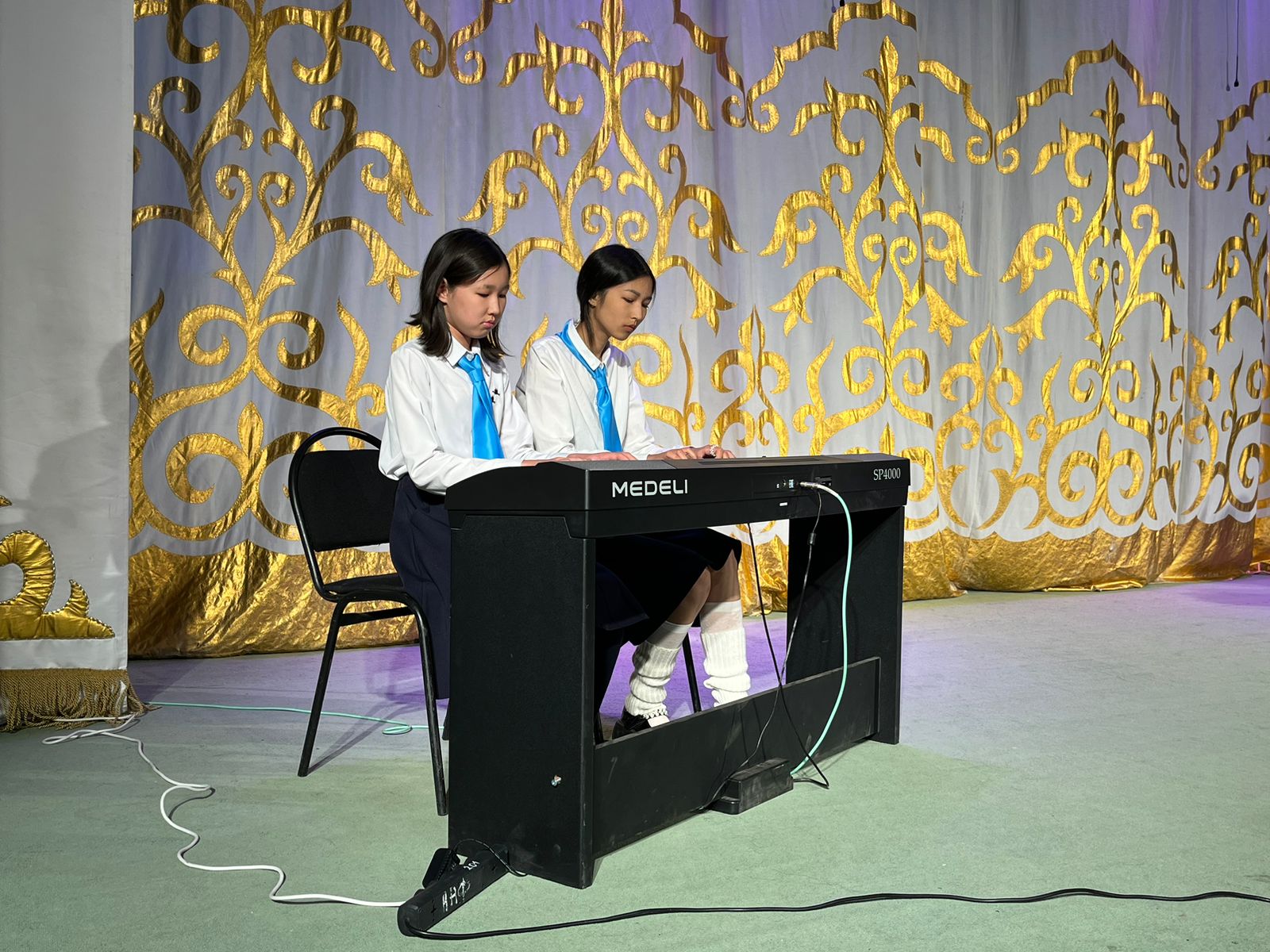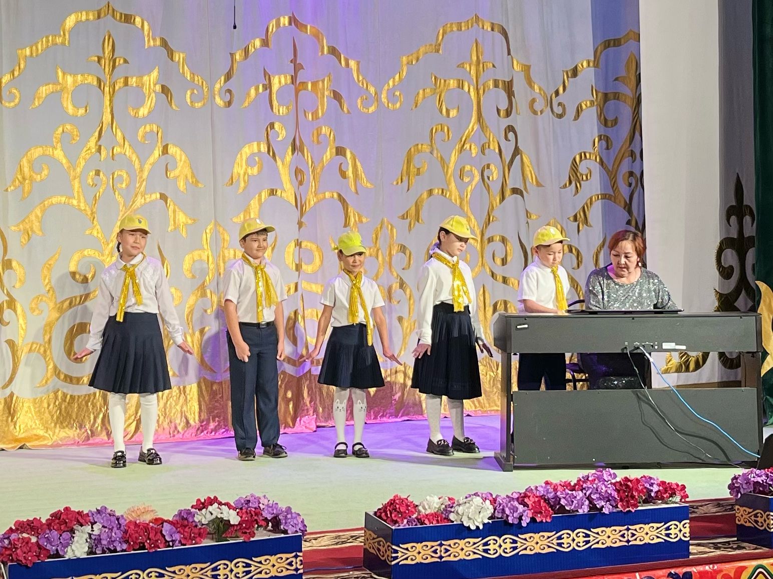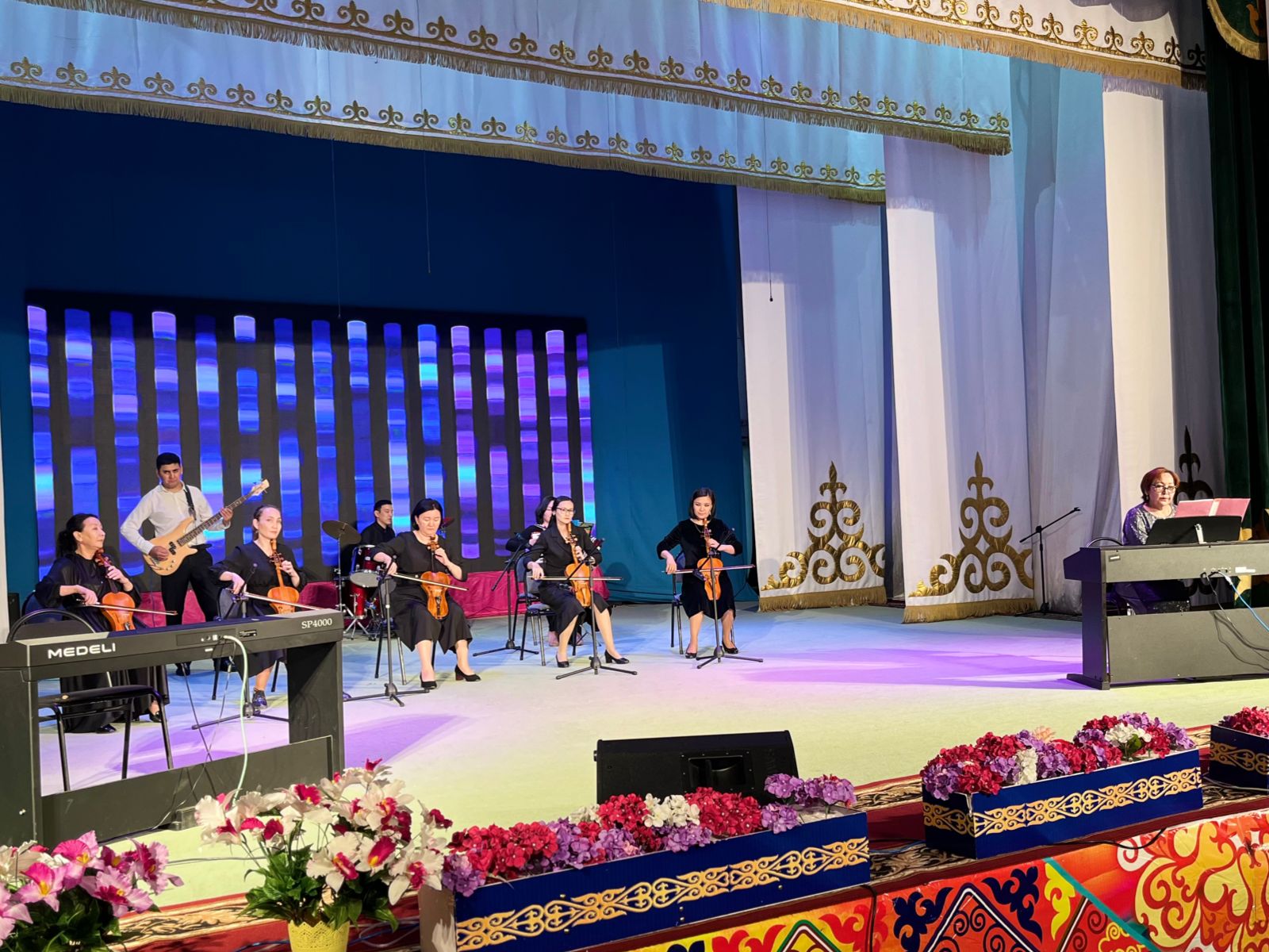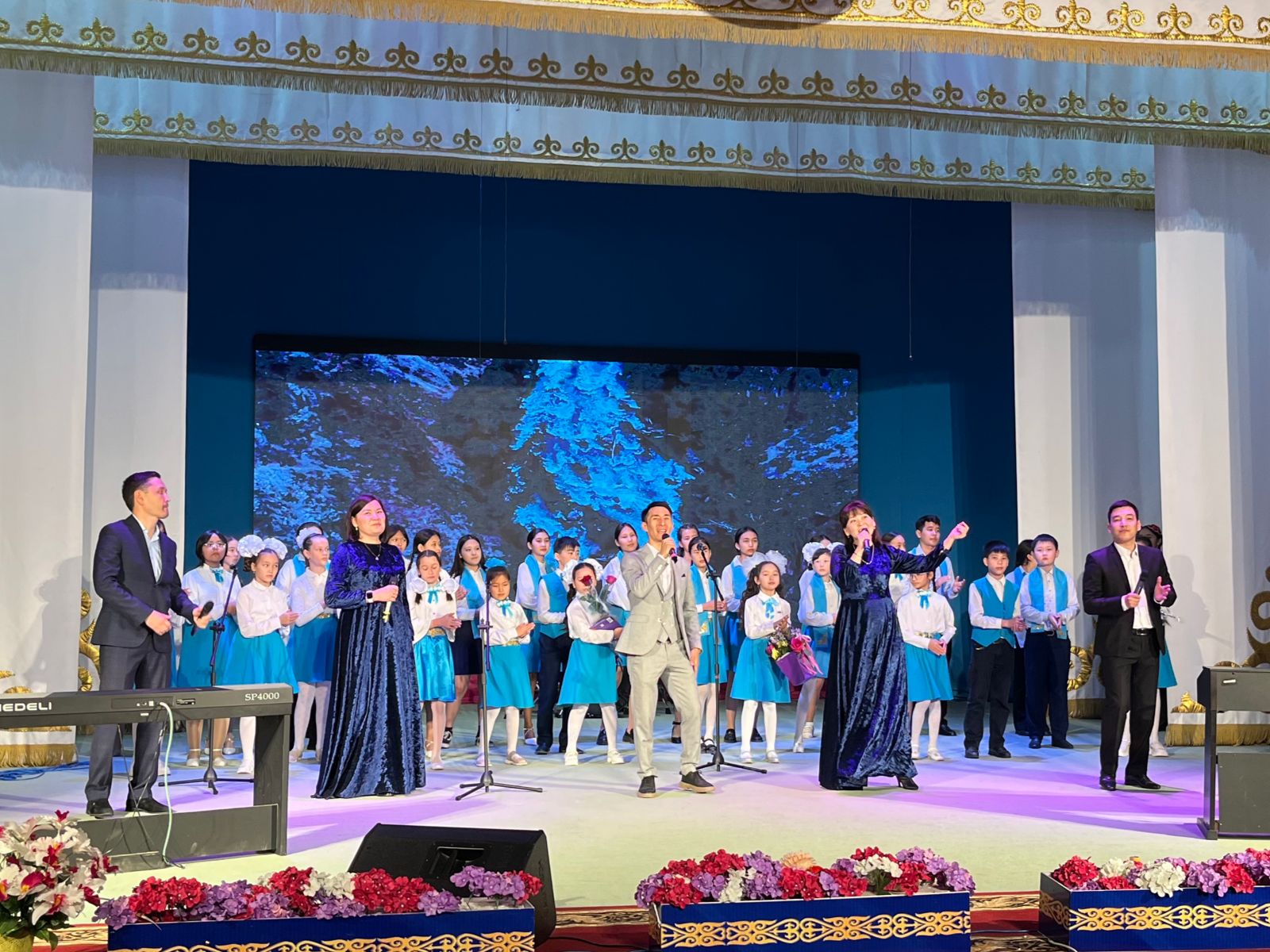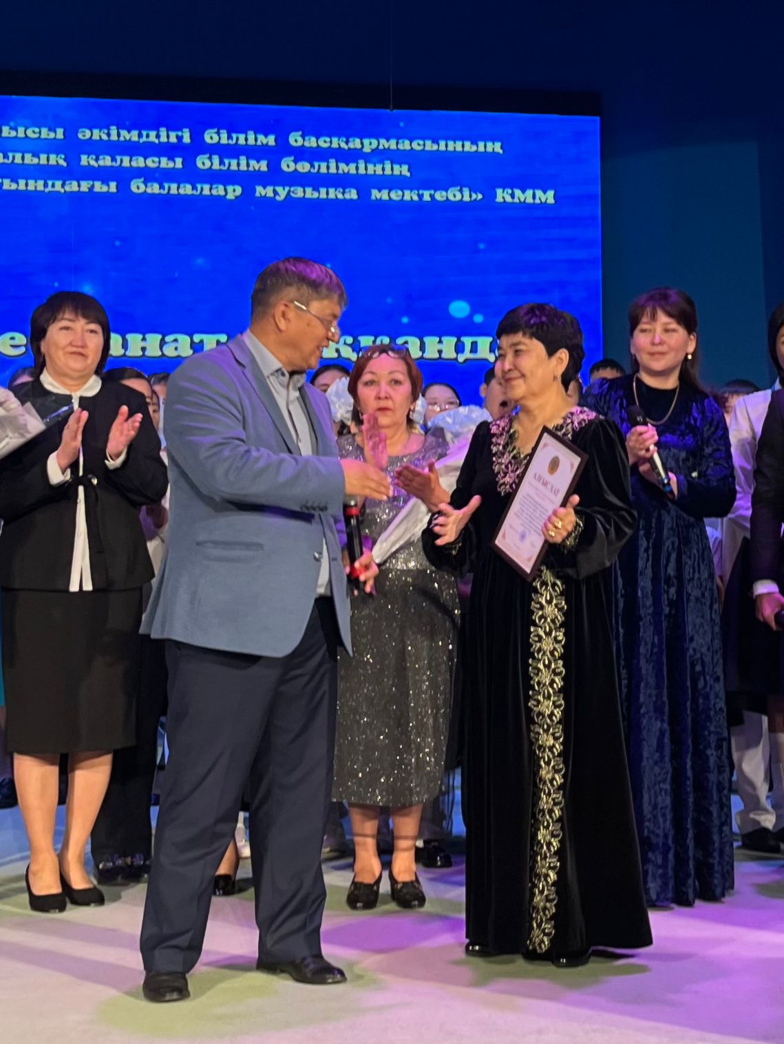 20 мамыр күні Қазақ жасөспірімдер театрында елімізде ЮНЕСКО көлемінде тойланып жатқан күй атасы - Құрманғазының 200 жылдық, ұлт ұстазы Ахмет Байтұрсыновтың 150 жылдық мерейтойға және ата-аналарға арналған облыстық «Үндестік» жобасы аясына орай мектебіміздің «Өнерге қанат қаққандар» атты жылдық есеп беру концерті өткізілді.Игі жақсылардың басын қосқан бұл концерттің алғашқы шымылдығын 80 оқушыдан құралған балалар оркестрі Құрманғазының күйі «Балбырауынды» дирижер Бөлтірікова Жақсыгүл Ибрагимқызының жетекшілігімен орындады. Концертіміз Ақанов Әділ Кәкиұлының жетекшілігімен қазақ композиторларының шығармаларынан құралған "Күй тартысқа" ұласты. Қорытынды бөлім барлық оркестр Н.Тілендиевтің «Әлқисса» күйімен тәмамдалды. Ақын аз Байтұрсынов Ахметтей, Сөзі алтын, мағынасы меруерттей дей келе А.Байтұрсыновтың «Аққұм» әнін вокал класының оқушысы, бірнеше дүркін республикалық, халықаралық байқаулардың жүлдегері Нұржайна Таубалды нақышына келтіре шырқады. Қазақстанда тұңғыш құрылған «Шертер» фольклорлы- этнографиялық ансамбльдің әншілері Сайлаубек Ордабаев пен Отаркүл Мұқатованың немерелері Томирис, Альмира және Нұрғисса Сайлаубектердің орындауында Халық күйі «Қара жорға» орындалса, болашағы көп үміт күттіретін шәкірттеріміз Аяулым, Айдана, Алихан, Адилет Абдибековтер Кармайклдің «Сердце и душа», Айтқали Жайымов «Шалқыма» орындайтын домбыра класының оқушысы, облыстық, республикалық, халықаралық байқаулардың лауреаты Қадыр Нұрәли, концертмейстер Бондаренко Римма. Құрманғазы, Тәттімбет бабамыздың, Дина анамыздың күйлерін санасына сіңірген шәкірттеріміз Ермұрат Үсеновтің «Кербез сұлу» шығармасын оқушылар халық аспаптар ансамблі Балым Жусупованың жетекшілігімен орындап берді. Домбыра, қобыз, сені ойнатамын,Толғау сап, төңіректі ойлатамын дей келе, Мұқан Төлебаевтың «Кестелі орамал» туындысын қобызшылар ансамблі Райхан Хасенова мен концертмейстер Жумаш Молдажанованың жетекшілігімен орындап, көрерменнің ыстық ілтипатына бөленді. Мектебіміздің ең жас күйші қыздарының орындауында халық күйі «Нәр ағашы» Б.Жусуповның жетекшілігімен. Абдулхамит Райымбергеновтың шығармасы «Секіртпе» Әсел Кәрібаеваның жетекшілігімен домбырашылар ансамблі қоңыр домбыраның күмбіріне бөледі. Көптің көңілінен шыққан концертіміз орындайтын шәкіртіміз Назым Алтынбаеваның орындауында, Жумаш Молдажанованың күйсандықта сүйемелдеуімен халық әні «Дайдидаумен» жалғасты. Дәстүрлі ән класынан құралған дуэт халық әні «Үш меркі» әнін тарту етті. Роза Газизованың жетекшілігімен аккордеоншыларымыз да қалыс қалмай, Шуберттің «Экосез» туындысын орындап берді.Вокалдық ансамбль жетекшісі Гүлнұр Баяхметованың орындауында ешқашан ескірмейтін «Қазақ әндерінен попурри» орындалды. Марат Бердіғұловтың «Ақсауыт» шығармасы жетекшісі Ә.Ақановтың «Арқа сазы» ұлт аспаптар ансамблінің орындауында көпшіліктің құрметіне бөленді. Шәмші Қалдаяқовтың «Теріскей» әнін О.Қапан нақышына келтіре шырқады.Денеңді шымырлатып, толқытатын, Мәңгілік басымды ием, өнерге мен демекші, Т.Мұханбетжанов «Детство» шығармасы С.Шайхин жетекшілік ететін БЭНД Байқадамов. Карл Дженкинс "Палладио" орындайтын ансамбль жетекшісі Райхан Хасенова. «Я люблю кофе» орындайтын бірінші сынып оқушылары, жетекшісі Молдажанова Жумаш. Алтынайдың күйі «Ақжелең» орындайты