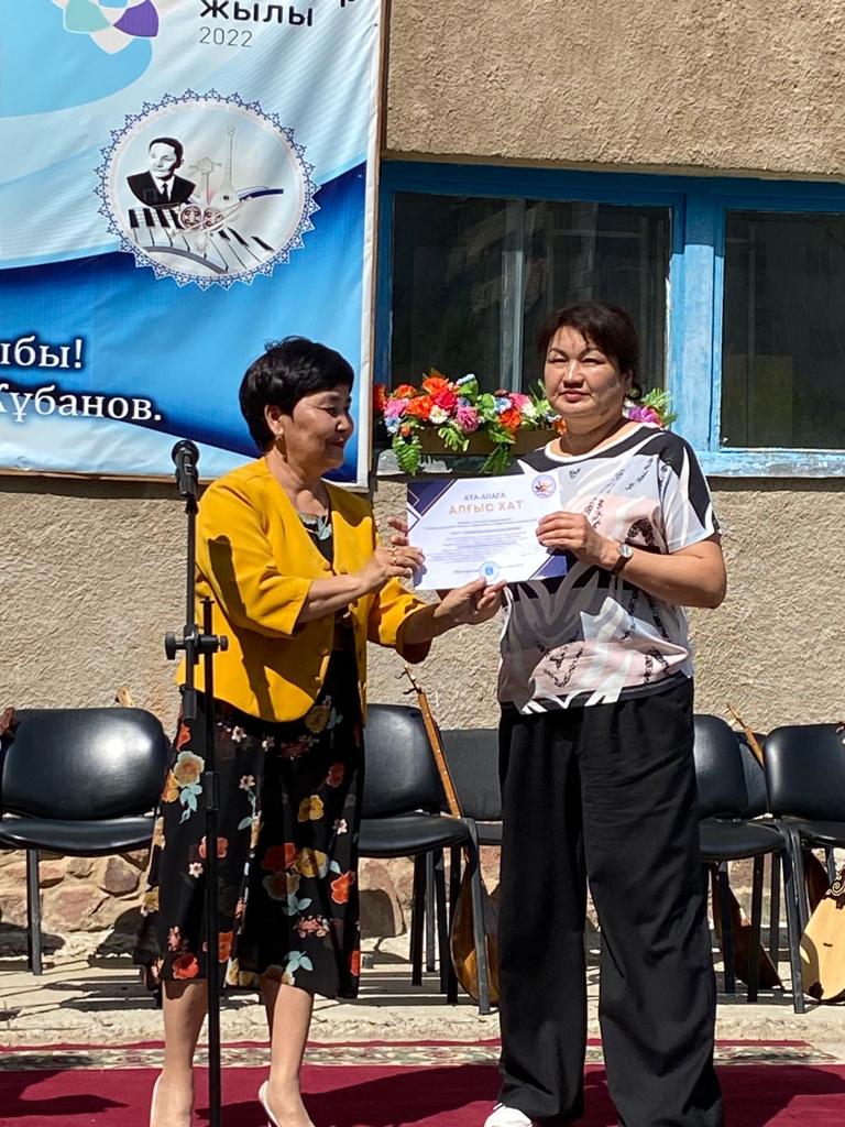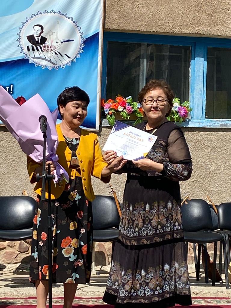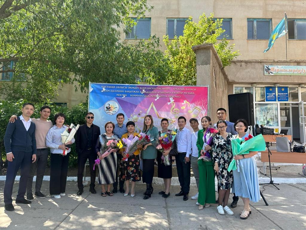 Б.Байқадамов атындағы балалар музыка мектебінде бітіруші түлектерге арналған концерт өтті.Өз кезегінде оқушылар мен ұстаздар өнерлерін ортаға салып, ән мен күйден шашу шашты.Атап айтатын болсақ, бітіруші түлектері мен жетекшілерінен құралған домбырашылар ансамблінің орындауында Құрманғазының «Балбырауын» күйі, Дәулет Айарудың орындауында Ұшқын Жамалбектің әні «Кейкі Мерген» әні кешіміздің шымылдығын ашты.Ары қарай сөз кезегі мектебіміздің директоры Жаксыгуль Ибрагимовнаға беріліп, бітіруші түлектерге салтанатты түрде ортаға шақырылып, Б.Байқадамов атындағы балалар музыка мектебін аяқтағанын растайтын үздік қызыл және жақсы оқығаны үшін көк түсті куәліктер табыс етілді.Келесі кезекте фортепиано бөлімінің бітіруші түлегі Майорова Варвара орындауында Абайдың «Көзімнің қарасы» әні, Мұқан Төлебаевтың «Кестелі орамалын» қобыз бөлімінің бітіруші түлегі Каирден Аяна концертмейстер Молдажанова Жумаш Кайрулаевнаның сүйемелдеуімен орындалды.Сонымен қатар,мектебіміздің мерекелік ic-шараларына белсене араласып жүрген бітіруші түлектерімізге арнайы мектеп директорының мадақтамасын табыстау директордың оқу ісі жөніндегі орынбасары Назира Әділханқызы мен кәсіподақ төрайымы Анна Владимировнаға сөз кезегі берілді.Серік Жұмабековтің “Жас қанат ұраным” әнін трионың орындауында шырқалды. Бүгінгі күнде біздің мектебімізден 2022 - 2023 оқу жылында фортепиано бөлімінен -5 оқушы, халық аспаптар бөлімі-қобыз аспабы бойынша-1 оқушы, домбыра аспабы бойынша-22 жұлдызды шәкірттеріміз музыка әлемінің алғашқы баспалдағынан білім алып, ұшқалы тұр. Алда басталар өмірдің саналы жолы ешкімді адастырмасын,сіздер жердегі жұлдыз болсаңыздар, аспандағы жұлдыздарыңыз өздеріңізге серік болып, алысқа жетелесін деген тілекпен, әсем әнмен қорытындыланған қоштасу концерті түлектерге арнап безендірілген мектеп ауласында естелікке фотосуретке түсумен аяқталды.