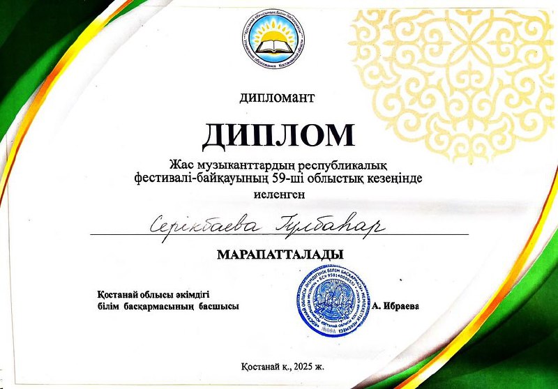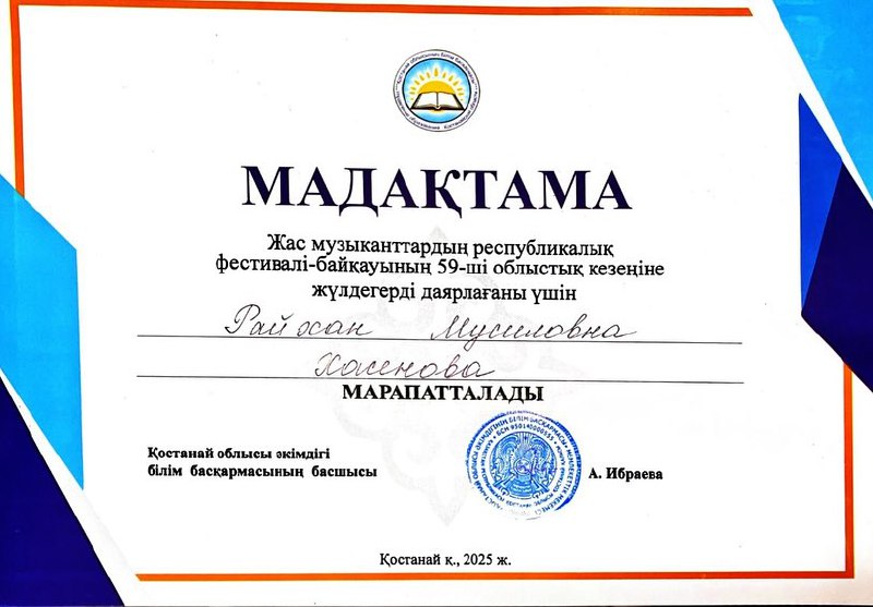 Қостанай қаласында өткен Жас музыканттар республикалық фестивалі - байқауының 59 - облыстық кезеңінде Мектебіміздің дарынды оқушылары жүлделі орындармен марапатталды.